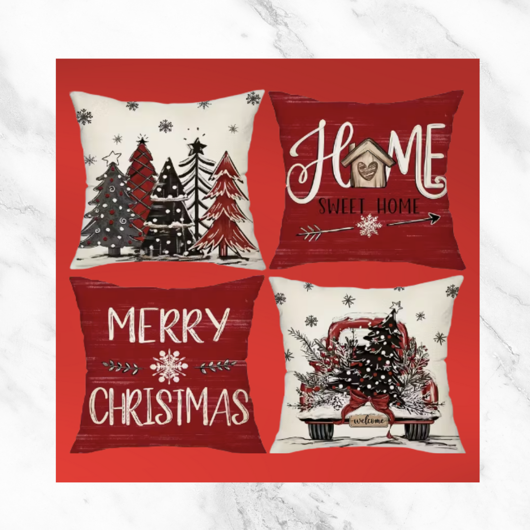 ✔️ 4 dekorative Kissenbezüge im Weihnachtsdesign