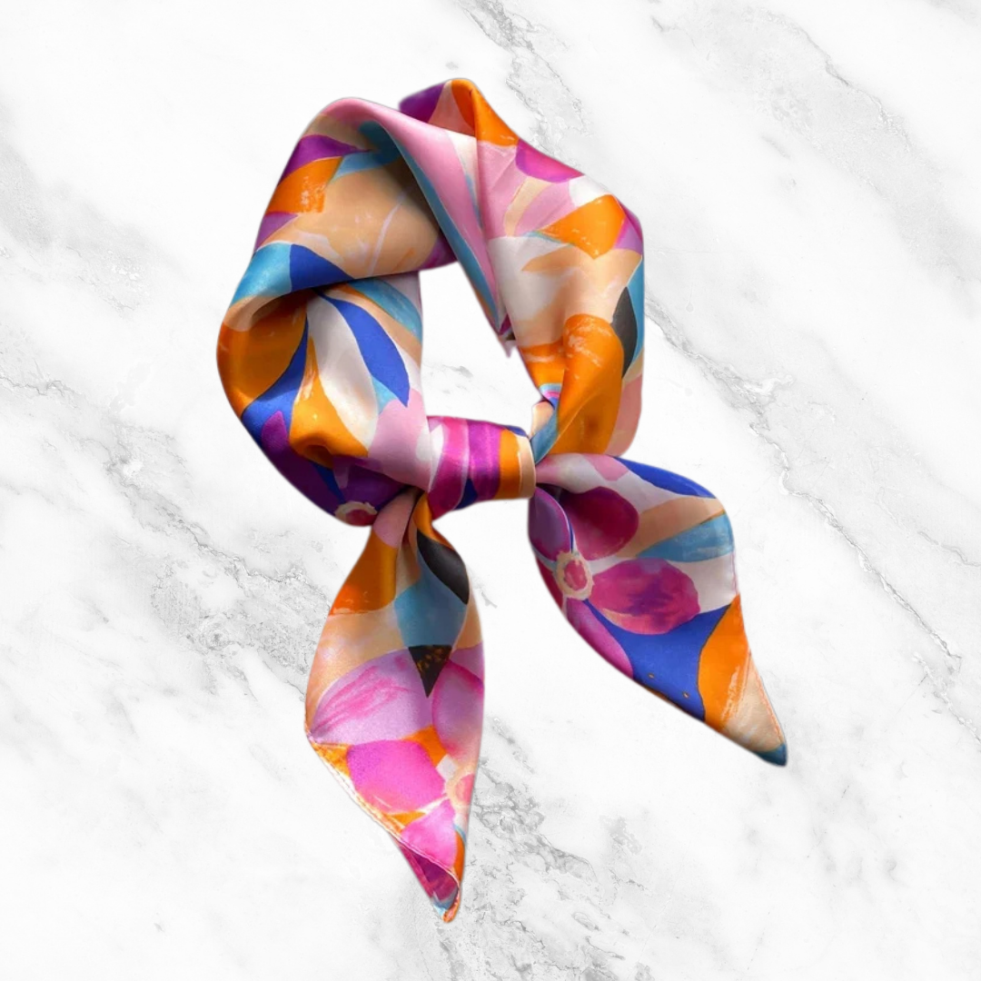 ✔️ Blumen Seidenschal 🌺 – Ein eleganter Schal aus hochwertiger Seide, der Ihrem Outfit einen Hauch von Luxus verleiht.