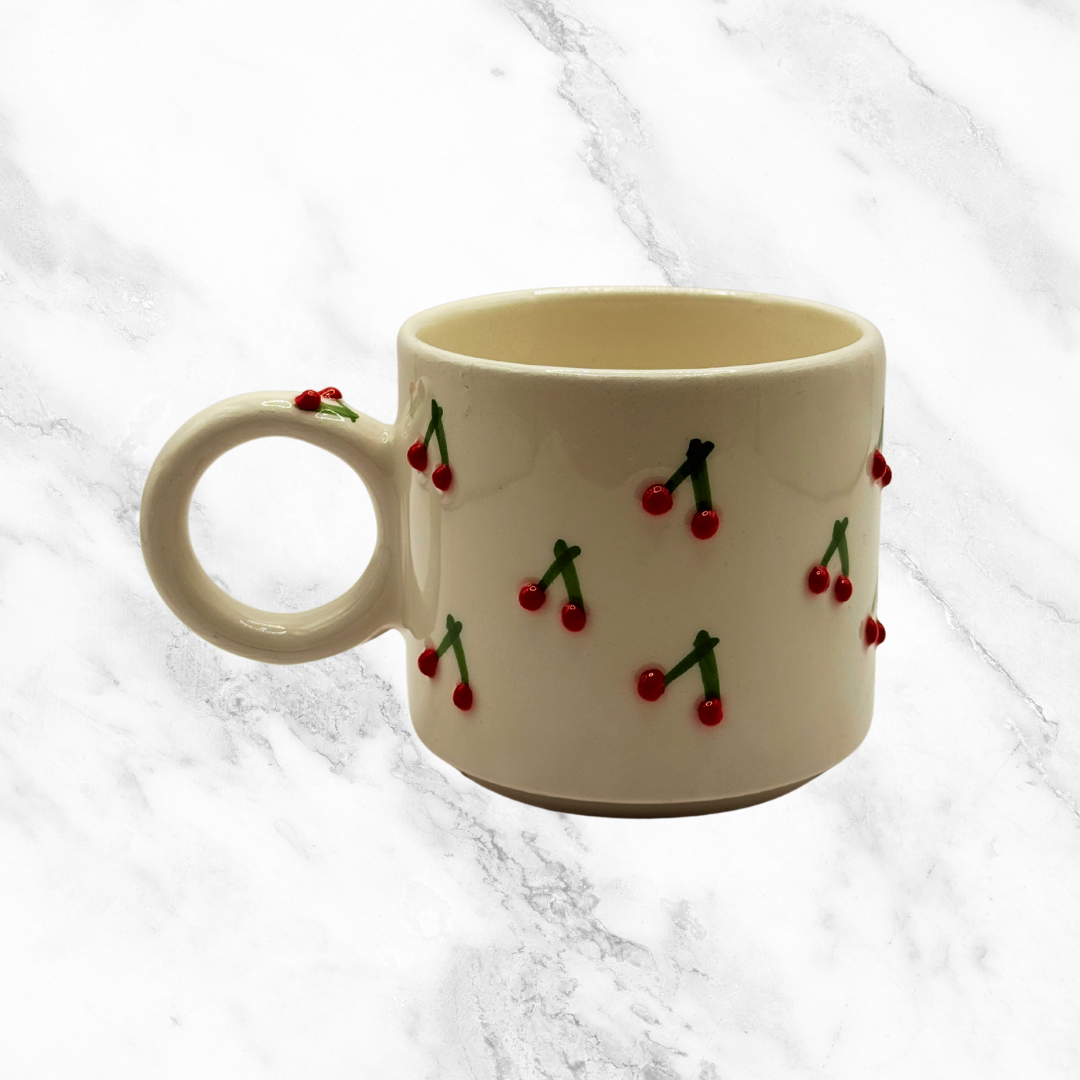 ✔️ 🍒 Keramiktasse mit Kirschmotiv – für Kaffee, Tee oder heiße Schokolade mit Stil